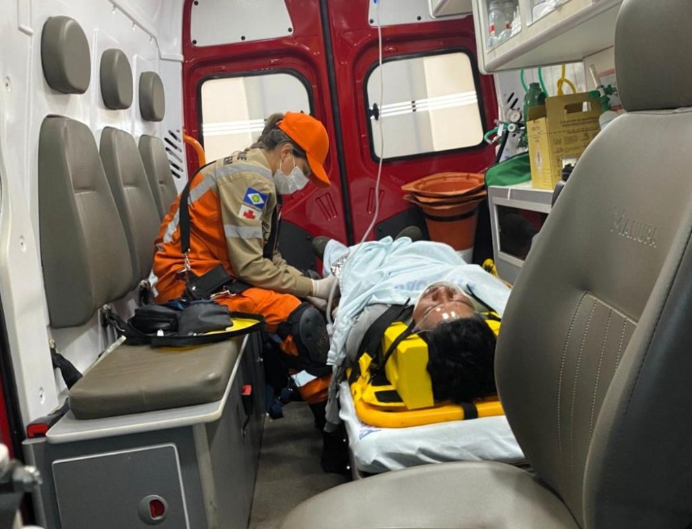 Corpo de Bombeiros socorre homem que caiu de 4 metros de altura