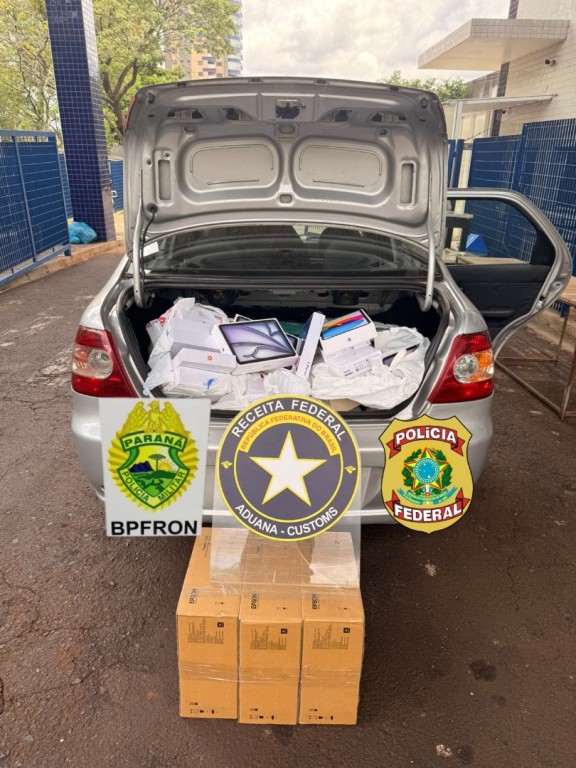 PF, PMPR e RFB apreendem veículo com mercadorias descaminhadas em Foz do Iguaçu/PR
