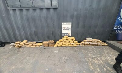 Policiais militares do 10º Batalhão apreenderam, na manhã desta quinta-feira (5.2), 74 tabletes de drogas, pesando aproximadamente cem quilos de entorpecentes, em Cuiabá. Na ação, um...